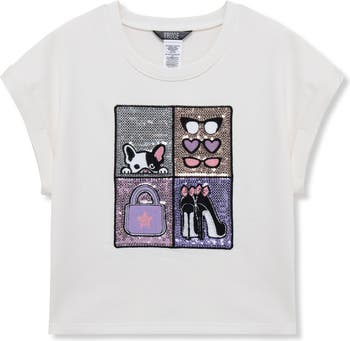 Sequin appliqués ensure your style star shines in this comfy French terry top framed with cuffed sleeves.