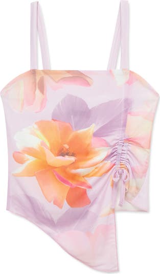 A cinched asymmetric hem and vibrant print update this stretchy tank that they'll keep reaching for again and again.