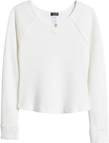 Fashioned from a breathable waffle stitch, this long-sleeve top is a comfy layer for kids from school to the weekend.