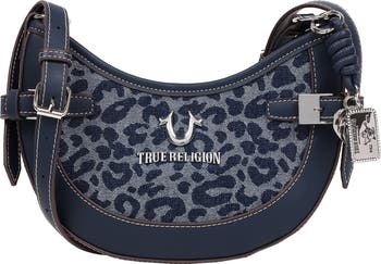 Leopard print a gleaming horseshoe logo bring the brand's heritage charm to this crescent shoulder bag made from durable denim that channels the Y2K aesthetic.