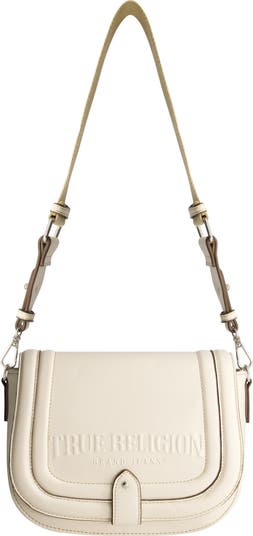 An embossed True Religion logo brings a signature look to this saddle crossbody bag that's topped with an adjustable strap for hands-free wear.