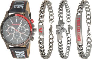 Chronograph Faux Leather Strap Watch, 44.5mm & Assorted Bracelets Set