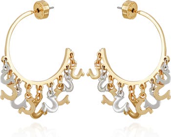Two-tone horseshoe-shaped drops add branded appeal to hoop earrings done in a high-shine finish.