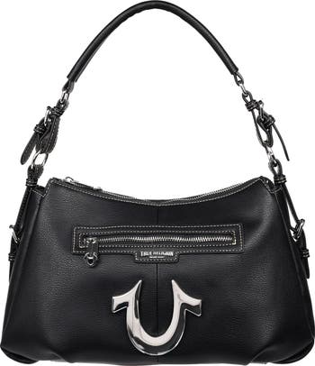 Gleaming horseshoe hardware adds a signature look to this spacious shoulder bag topped with an adjustable strap for hands-free wear.