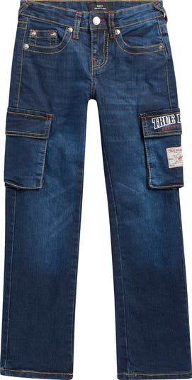Give your kid cool retro style with faded bootcut jeans featuring logo-embellished cargo pockets for added utility.