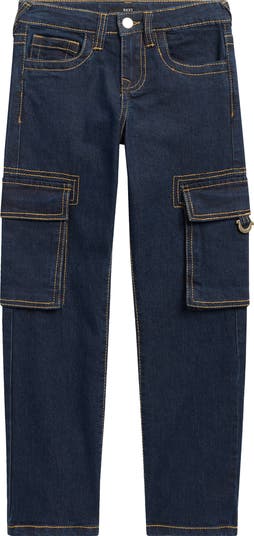 Dark-wash denim made with a touch of stretch brings all-activity comfort to cargo pants that are sized for kids and embroidered with the brand's iconic horseshoe at the back pockets.