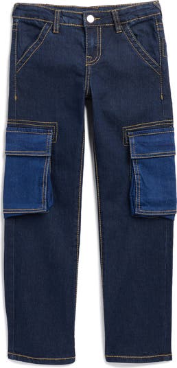 Cargo pockets add on-trend appeal to relaxed-fit jeans that are a comfortable choice on desk days and weekend outings.