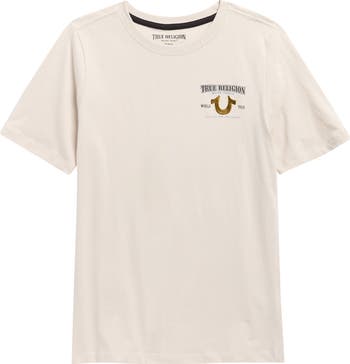 Metallic horseshoes put signature touches on this kid-sized graphic T-shirt made from a comfortable cotton blend.