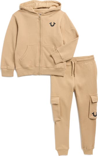 Add a touch of brand luck to their laid-back lineup with this cotton-forward fleece set pairing a zip hoodie and cargo-pocket joggers covered in horseshoe logo graphics.