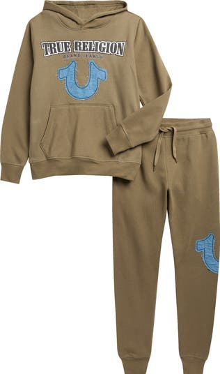 Signature horseshoe patches pay homage to the label's legacy of impeccable denim on these kid-sized sweats featuring a comfy cotton-blend hoodie and matching joggers.