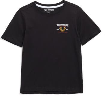 They'll stand out in bold brand style in this cotton T-shirt showcasing horseshoe graphics on the chest and back.