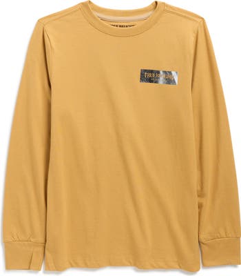 A metallic logo and a Buddha graphic brings big brand energy to this kid-approved cotton long-sleeve T-shirt.