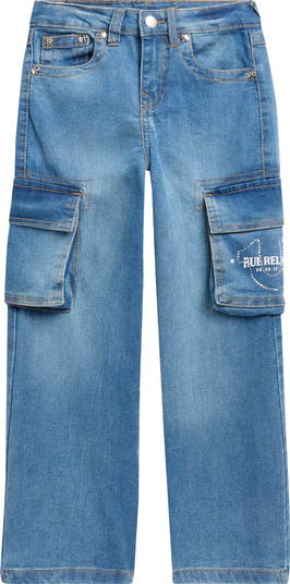 A rhinestone-embellished logo and horseshoe stitching at the pockets bring signature brand distinction to these kid-approved cargo jeans.