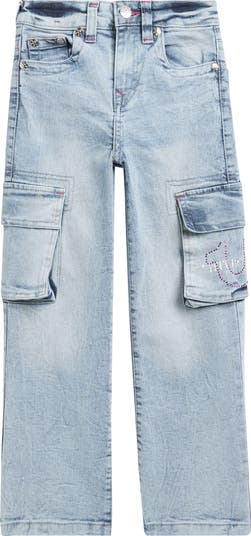 A rhinestone-embellished logo and horseshoe stitching at the pockets bring signature brand distinction to these kid-approved cargo jeans.