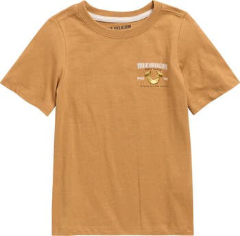 Branded graphics lend heritage appeal to an everyday T-shirt cut from airy cotton for lasting comfort on playground days or weekend outings.