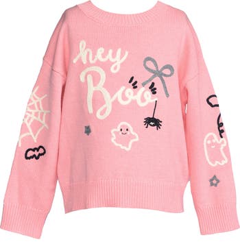 They'll be bringing sweet-and-spooky vibes in this cotton-blend sweater rendered in a comfy fit that's relaxed and casual.