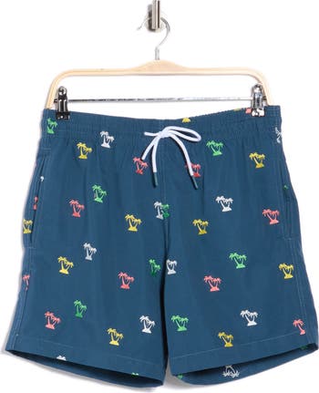 These drawstring‑waist swim shorts feature functional pockets and an allover pattern for a comfortable, ready‑for‑the‑water style.