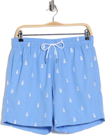 These drawstring‑waist swim shorts feature functional pockets and an allover pattern for a comfortable, ready‑for‑the‑water style.