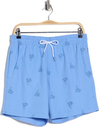These drawstring‑waist swim shorts feature functional pockets and an allover pattern for a comfortable, ready‑for‑the‑water style.
