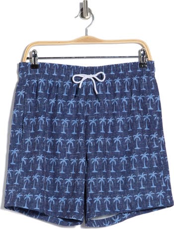 These drawstring‑waist swim shorts feature functional pockets and an allover pattern for a comfortable, ready‑for‑the‑water style.