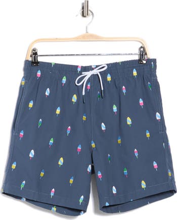 Dive in or kick back with ease in these ice cream-embroidered swim trunks designed with a longer inseam and finished with on-seam pockets.