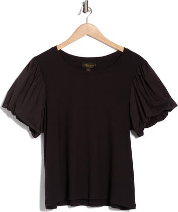 Refresh your workday essentials or polish up your weekend ensembles with this ribbed top framed by woven puff sleeves.
