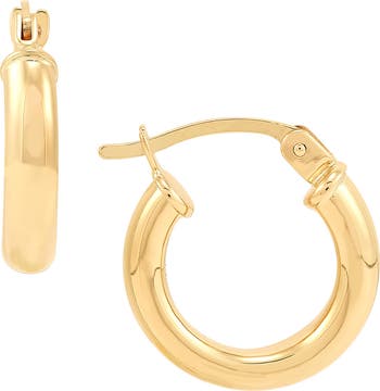 A tubular silhouette adds contemporary shine to these huggie hoop earrings crafted from gleaming 14-karat gold.