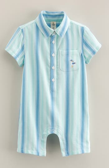 Your active little one will look sharp in the sandbox wearing this cotton-twill romper that's fashioned like a polo and finished with a fun touch of embroidery.