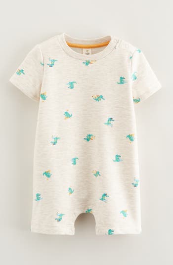 An animal graphic keeps the feeling fun in this comfy cotton-blend romper that will be baby's uniform for busy days of play.