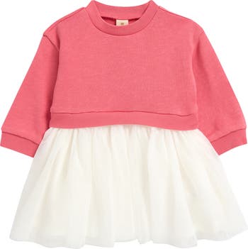 A sweatshirt-inspired bodice lends casual charm to this baby-sized dress with a tutu-inspired skirt that serves up ballet-ready vibes.