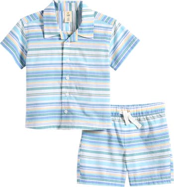 Lightweight, breathable cotton brings sunny-day comfort to your little one in a roomy camp shirt and matching shorts that tie at the waist for getting the perfect fit.