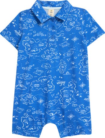 Your active little one will play away in the comfort of this cotton-jersey romper that's fashioned like a polo.