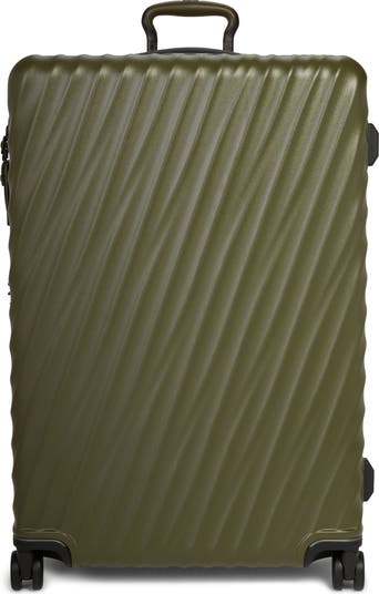 Exterior features: Tumi's patent-pending DuraFold™ construction method folds and reinforces the corners of hardside cases with heavy-duty stitching and impact-resistant caps that provide superior corner strength and impact resistance for long-lasting use. Four recessed, 360º-swiveling, easy-to-maneuver wheels offer multidirectional navigation through busy airport terminals.