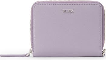 Signature logo hardware gleams against the smooth leather of a zip-around wallet packet with a variety of pockets to safely secure your cards, cash and coins.