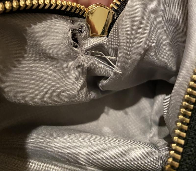 - Exterior front zip pockets; side zip pocket; back smartphone pocket; back luggage sleeve