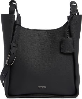 Pebble-grained leather elevates a roomy crossbody bag equipped with a removable key clip and handy Tumi Tracer®.
