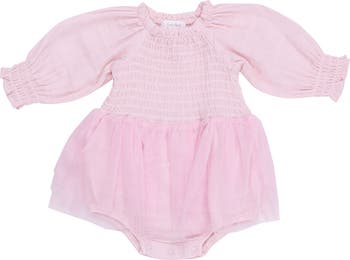 Baby will look like a ballerina in this smocked bodysuit featuring a mesh tutu skirt and breezy organic cotton fabrication.