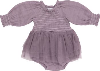 Baby will look like a ballerina in this smocked bodysuit featuring a mesh tutu skirt and breezy organic cotton fabrication.