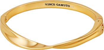 Perfect to stack or show off solo, this hinged bangle bracelet is fashioned in a twisted silhouette to catch and reflect the light.