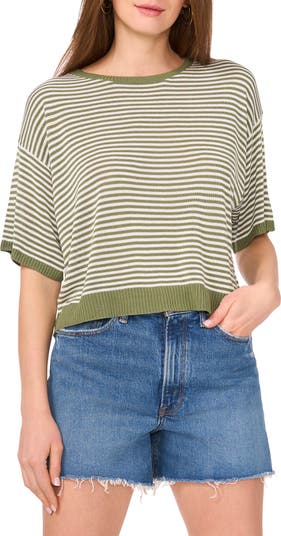 Knit in a relaxed fit with dropped shoulders and a slightly cropped hem, this smartly striped elbow-sleeve sweater is a wardrobe essential that works in any season.