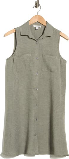 Two Pocket Sleeveless Shirtdress