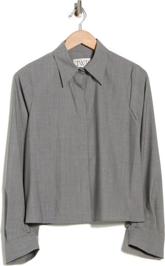 A touch of stretch enhances the comfort of a virgin-wool shirt fashioned with a hidden placket and boxy cut that brings a borrowed-from-the-boys look to your wardrobe.