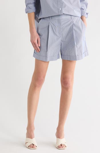 Front pleats bring a polished touch to these microstriped shorts cut from lightweight, breathable cotton.