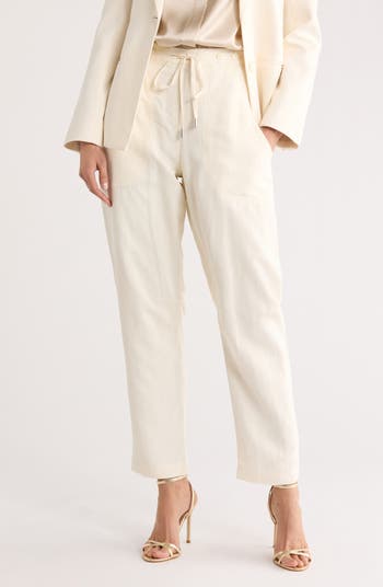 Milky buttons and a drawstring waist further the casually cool attitude of these pull-on pants that are right for work and play.