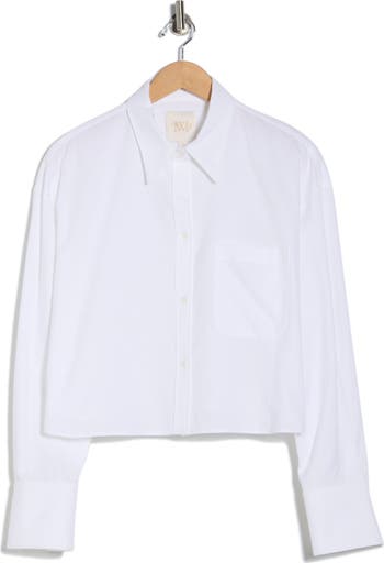 Exude polished style from the workday to weekend in this breathable cotton button-up shirt cut in a boxy, cropped silhouette.