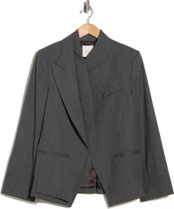 Bring contemporary edge to your desk-to-dinner ensembles with this stretch-wool twill blazer finished in an asymmetric double lapel and turned-up collar.