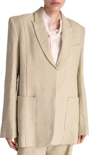 Padded shoulders enhance the strong silhouette of this oversized blazer updated in lightweight linen for a work-to-weekend vibe.