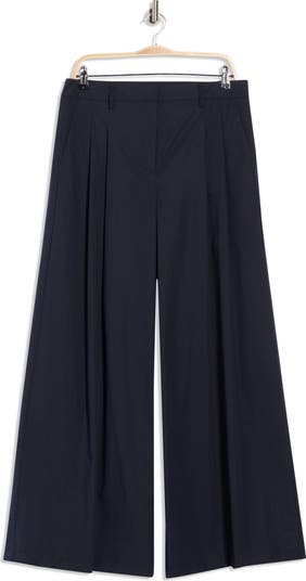 Crisp front pleats bring sophisticated structure to these wide-leg trousers cut from cotton with a kiss of stretch.