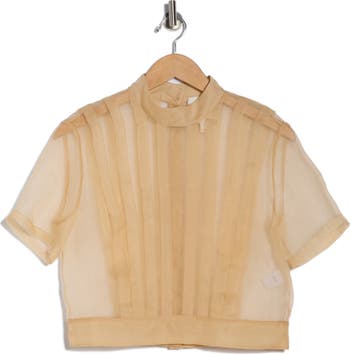 Tonal stripes run down this lightweight, short‑sleeved top cut from sheer silk for an effortlessly chic night‑out look.