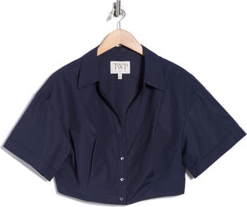 A boxy, cropped silhouette brings modern dimension to this short-sleeve button-up shirt cut from crisp cotton poplin.